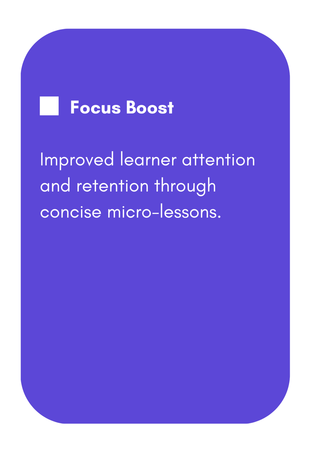 | 1. Content overload ➜ Long, dense lessons ➜ High cognitive load ➜ Difficult to retain ideas | ➜ Split content into focused micro-lessons ➜ Defined clear objectives per lesson ➜ Reduced cognitive load intentionally |
