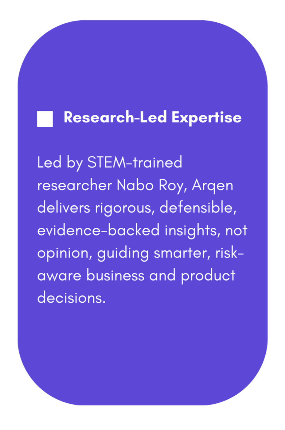 Arqen helps teams move faster and make smarter decisions backed by logic, not assumptions. Led by STEM-trained, award-winning expert Nabo Roy, the studio delivers structured insights and actionable recommendations that measurably improve your digital product.