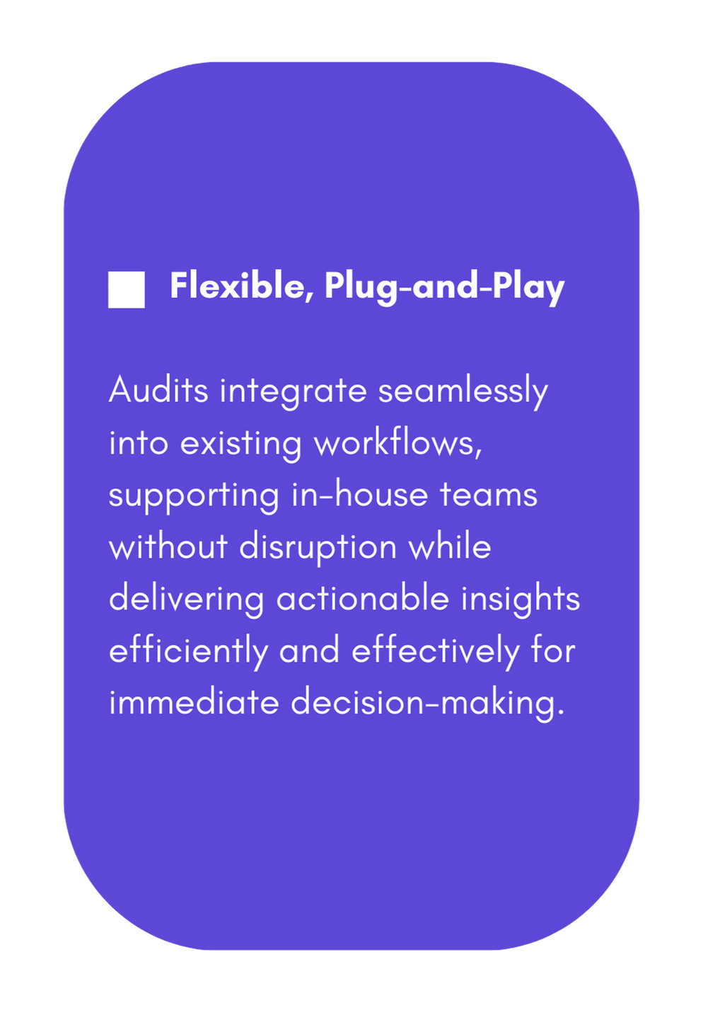 Please Note:This is an audit and advisory service. Design and build execution are not included.