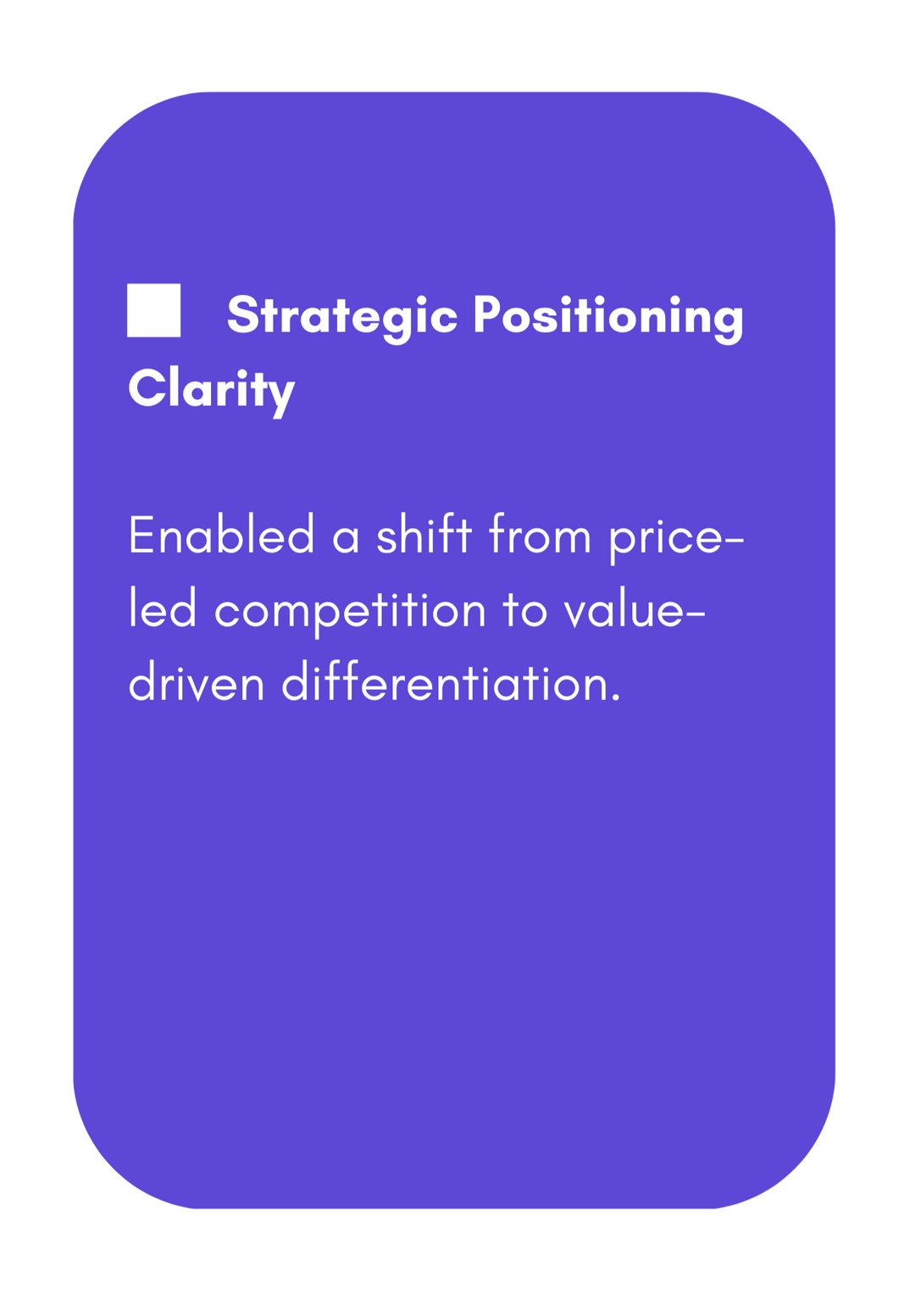 | Insight: Market competes primarily on price, leading to low perceived quality |