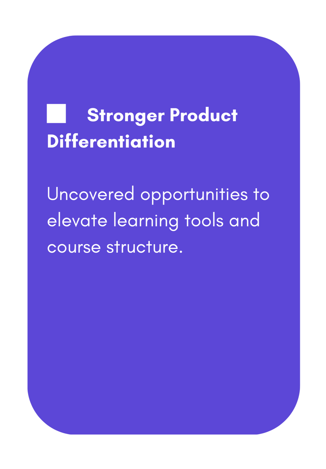 | Opportunity: Position the brand around value, outcomes, learning quality. |