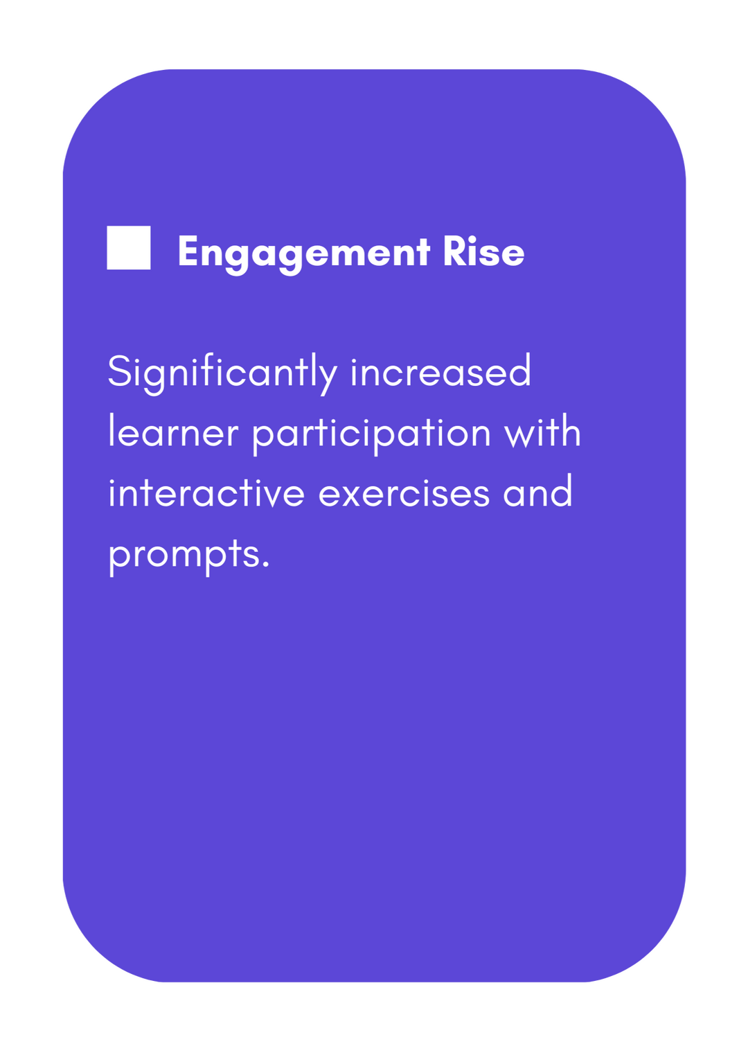 | 2. Low engagement ➜ Passive video consumption ➜ Minimal learner interaction ➜ Low completion motivation | ➜ Added interactive exercises and prompts ➜ Introduced reflection checkpoints ➜ Encouraged active learner participation |